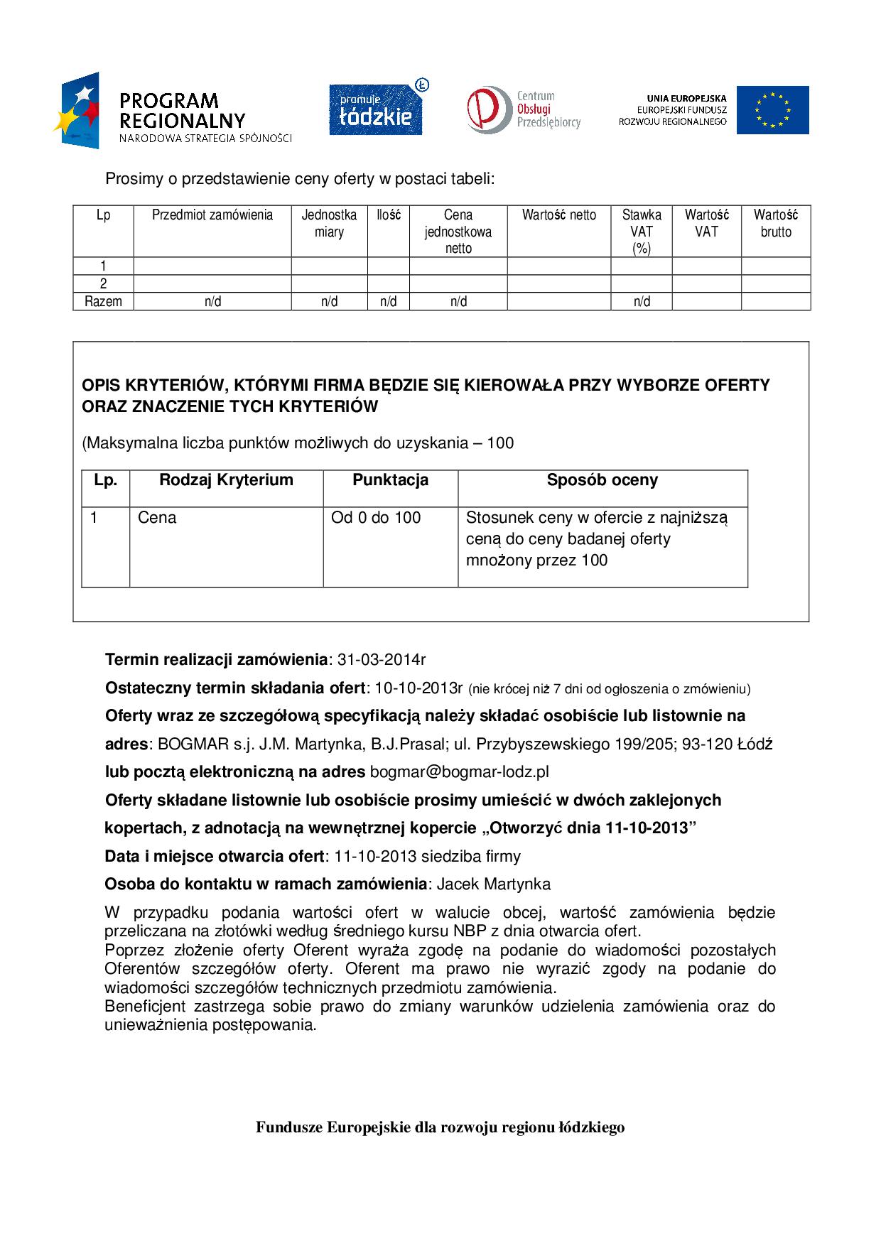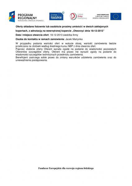 W dniu 05.08.2014r. została wybrana oferta firmy DONE - Robert Papis